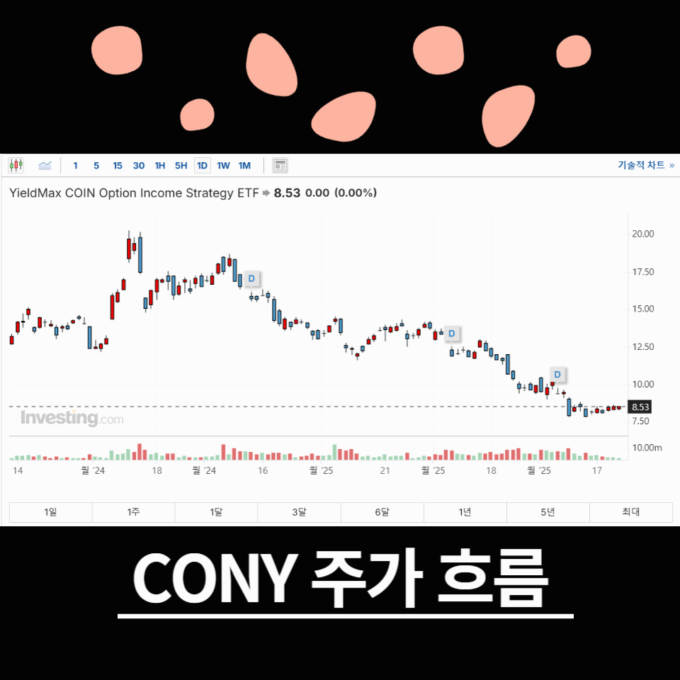 👉 일반 ETF는 보유 주식에서 발생하는 배당금을 지급하지만, CONY는 코인베이스의 콜옵션 매도를 통해 발생한 수익을 배당금으로 지급합니다.